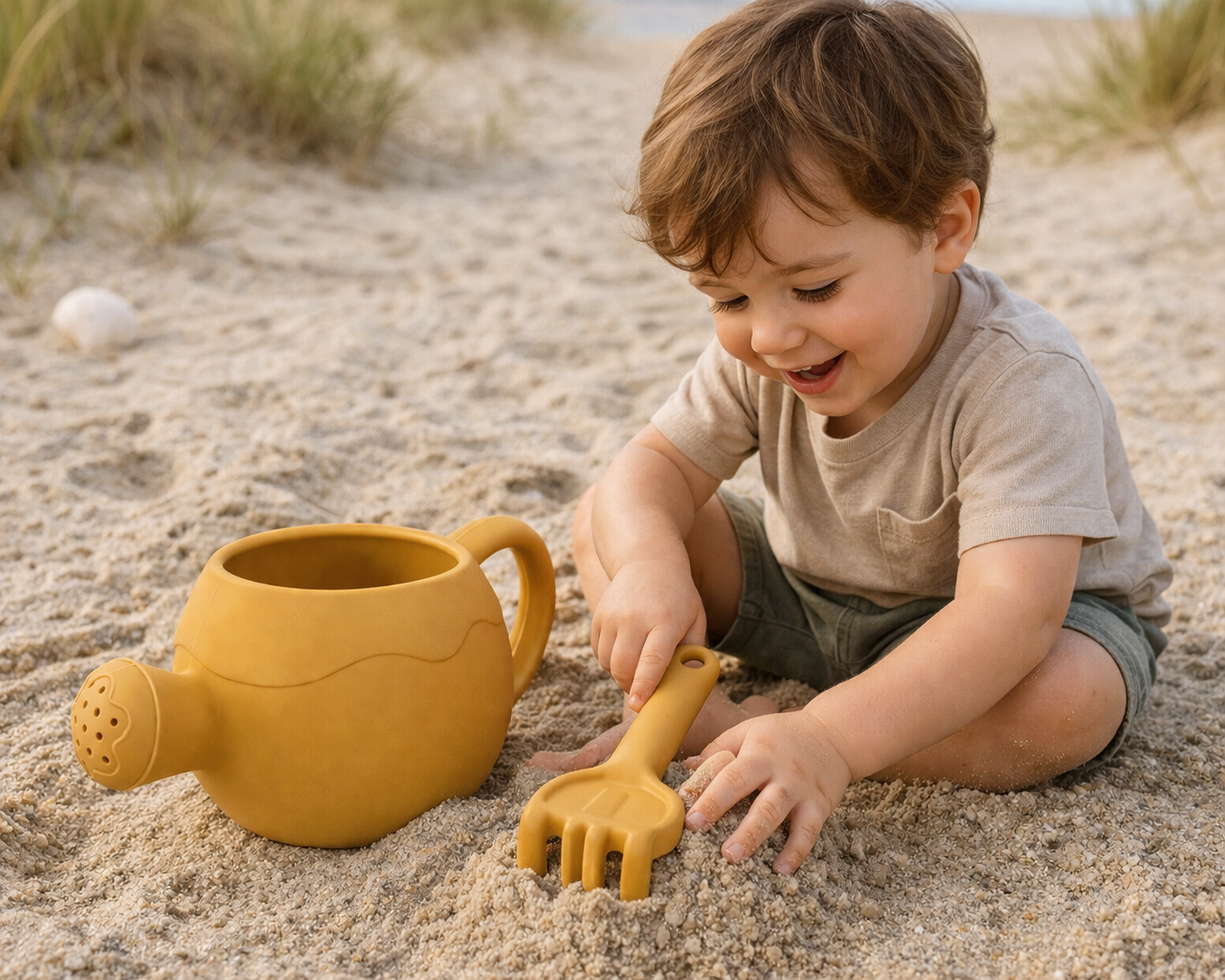 Offrez à votre enfant des moments de jeu créatifs avec ce joli set de plage composé d’un arrosoir et d’un râteau assorti 🌊